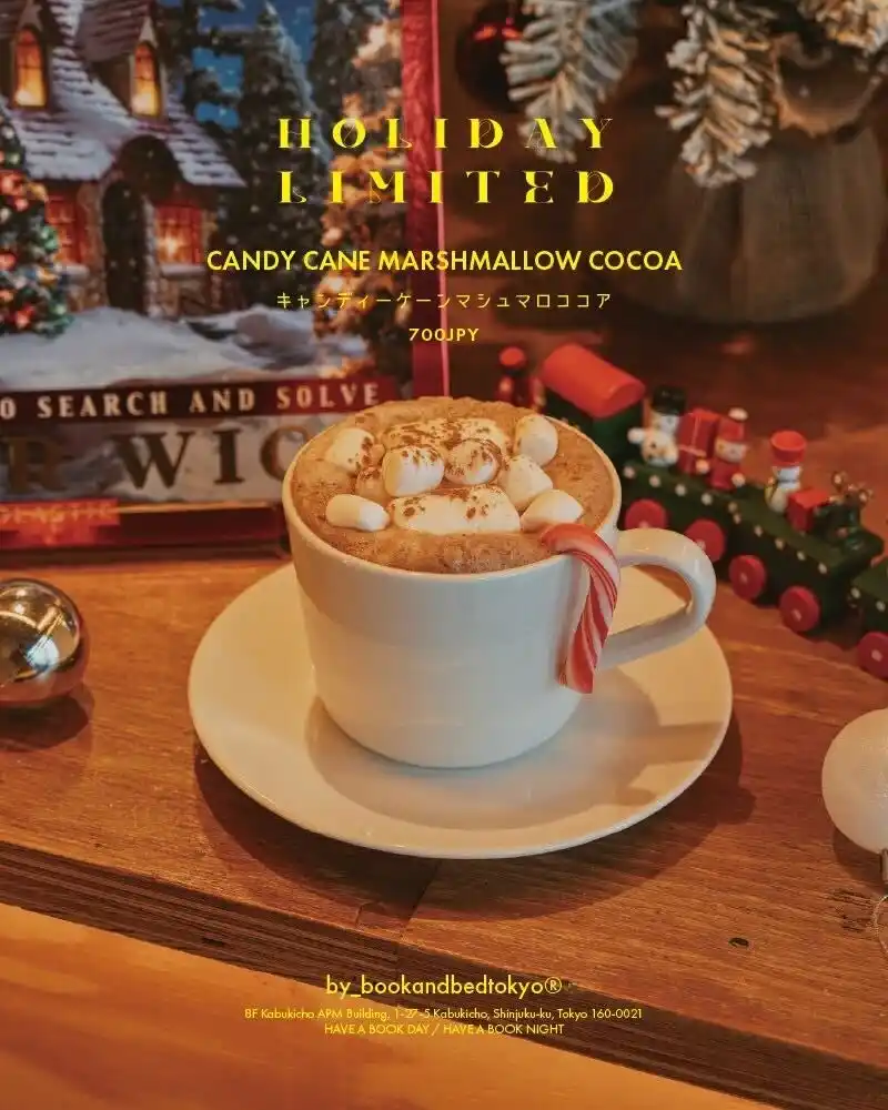 abc株式会社(本社:東京都港区、代表取締役:松田 元、以下「当社」)の子会社である、アトリエブックアンドベッド株式会社(以下「アトリエブックアンドベッド社」)が運営する「BOOK AND BED TOKYO SHINJUKU」において、ホリデーシーズン限定メニュー「Candy Cane Marshmallow Cocoa」(700円)を2025年12月28日(日)までの期間限定で販売開始いたしましたのでお知らせいたします。 |