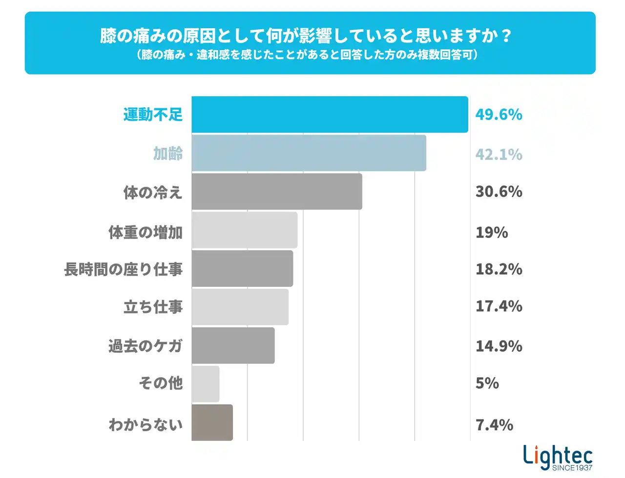 特に40代では約4人に1人(27%)が「体の冷え」を原因と認識、膝の痛み・違和感の原因は年代で異なる実態が浮き彫りに |