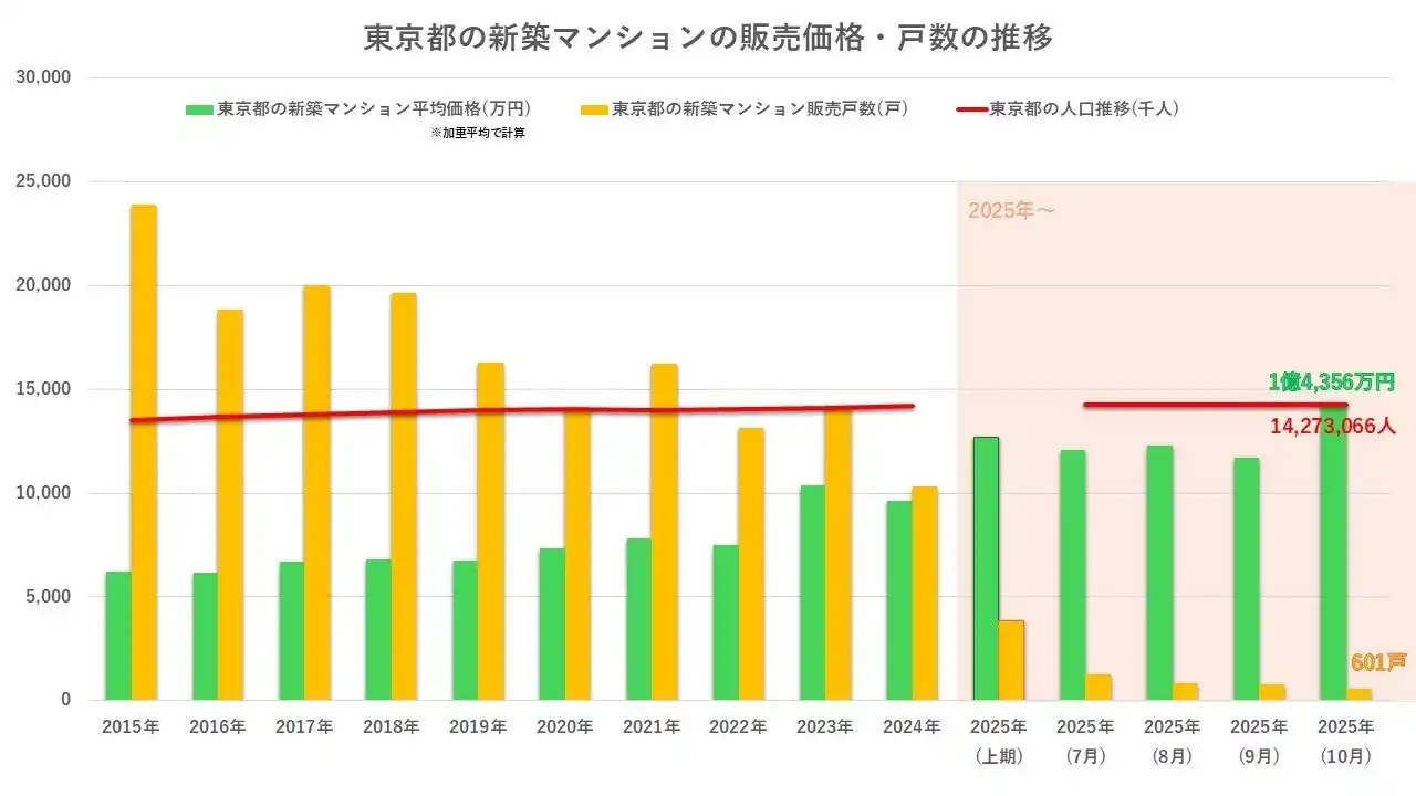 首都圏エリア専門の投資用不動産販売会社 セットライフエージェンシー株式会社 は、 2015年~2025年までの東京都における 新築マンションの「価格・発売戸数・人口」 の推移を独自に集計・分析しました。 |