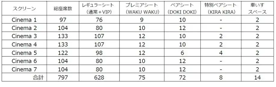 新劇場は全7スクリーン、797席を備え、映画館のみならず、ショッピングや食・エンターテイメントが一体となった空間の中で、地域の皆さまに日々ワクワクする感動体験をお届けします。 |