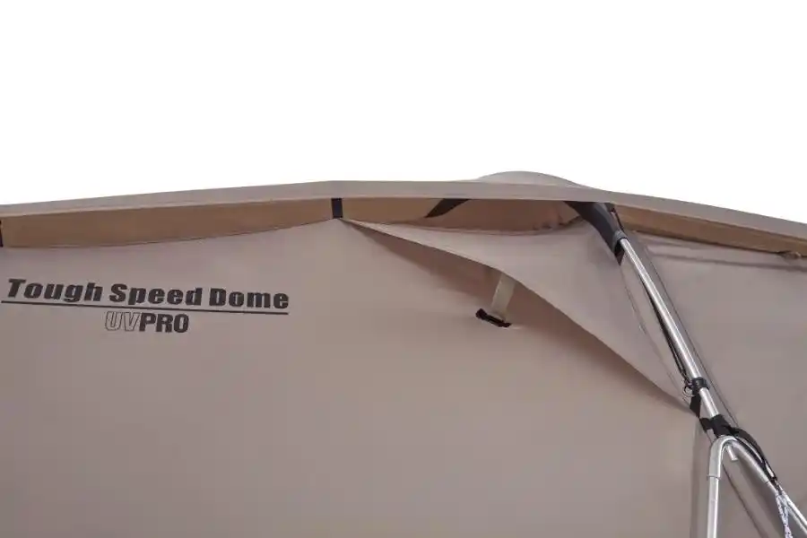 耐水圧約2,000mmの生地に加え、ルーフフライとフルスカートを標準装備しており、「タフシリーズ」最大の特長である雨風に強い耐久性も実現しています。 |