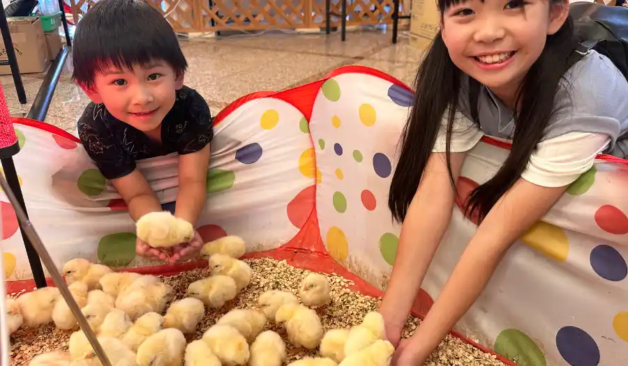 アリーナ内コンコースに、ひよこやカメレオン、ヘラクレスオオカブトなど、見て・さわって・いっしょに写真が撮れる「ふれあいミニ動物園」がアリーナ初登場! |