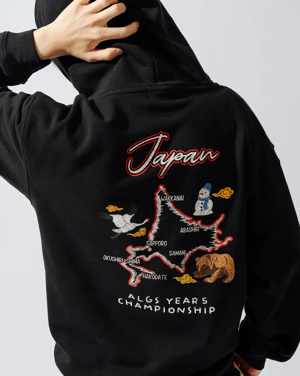 日本・札幌での開催ということもあり、北海道を象徴するアイコンとマップをスカジャン風にデザインを描き下ろしました。 |