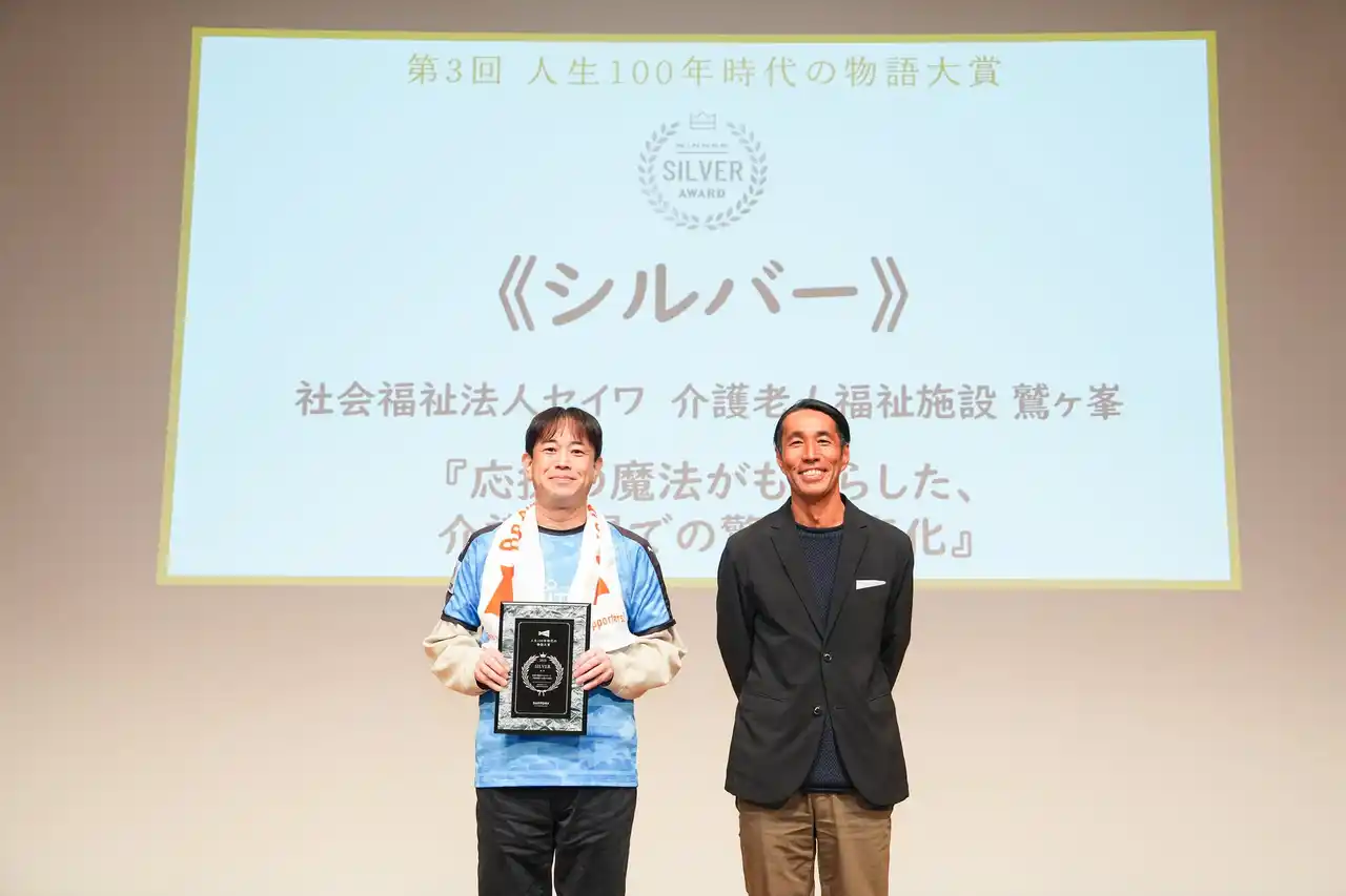 鈴木さんは「本来出席予定だった入居者様の『代わりにとってきて』という力強い言葉に背中を押され、本日は代理で登壇いたしました。3年間の活動を通じ、誰かを応援することは、応援する側にも『必要とされている』という喜びや大きな活力を与えてくれるのだと強く実感しています。現場の人手不足など課題はありますが、入居者様が生み出すこのパワーを糧に、今後も活動を継続してまいります。」と受賞への思いを語りました。 |