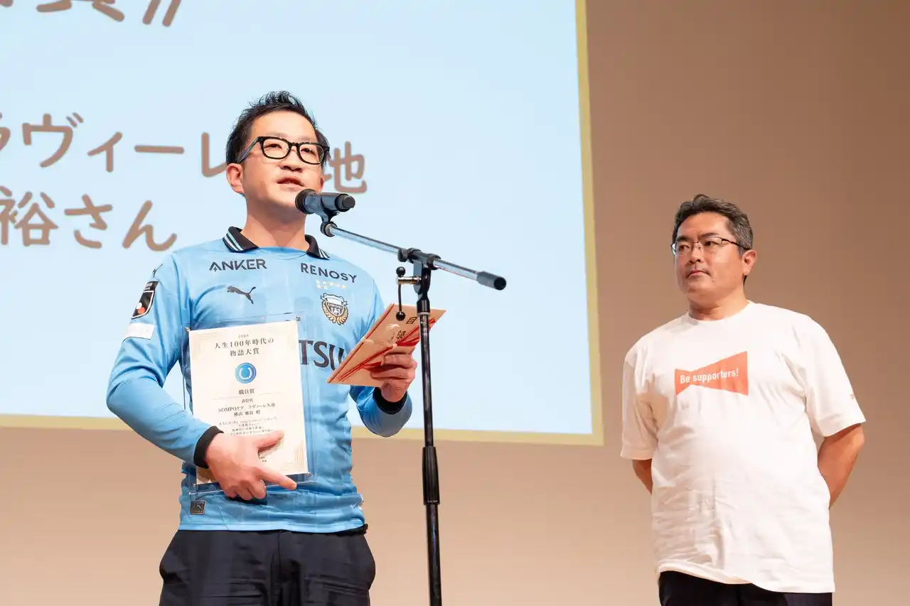 安立さんは「『ヨシコさんともっと楽しみたい』というスタッフの思いから始まった活動が、レノファ山口の松田選手との絆を結び、91歳の彼女に驚くべき活力を与えてくれました。 目標に向かって困難を乗り越えるヨシコさんの姿は、私たち支援者にとっても大きな希望であり、原動力となっています。 今後もこの受賞を励みに、関わるすべての皆様と共に『人生の喜び』を見つけ、いくつになっても輝けるよう挑戦を続けてまいります。」と受賞への思いを語りました。 |