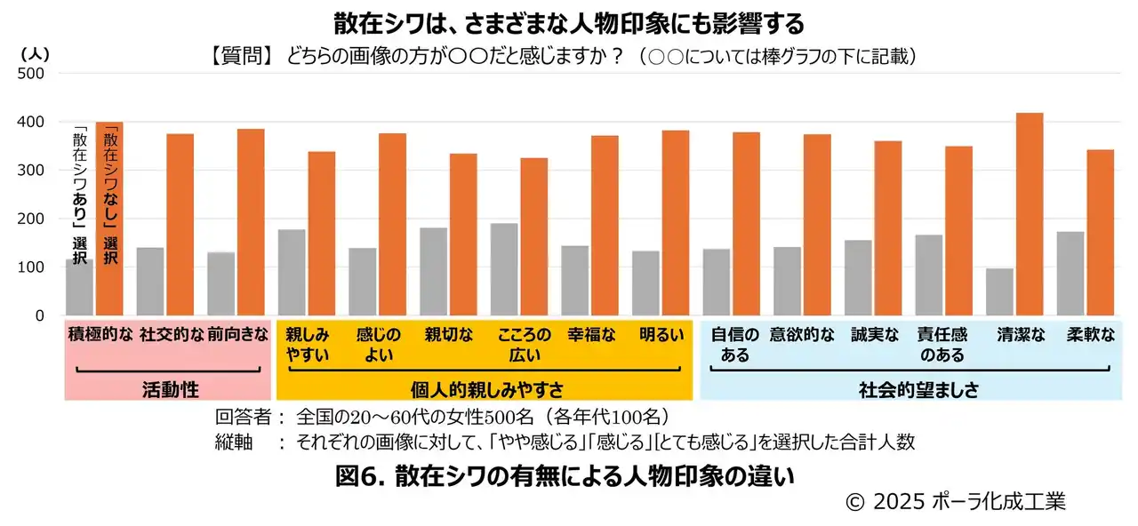 | 「散在シワ」の有無は、肌印象や人物印象に影響する | |||