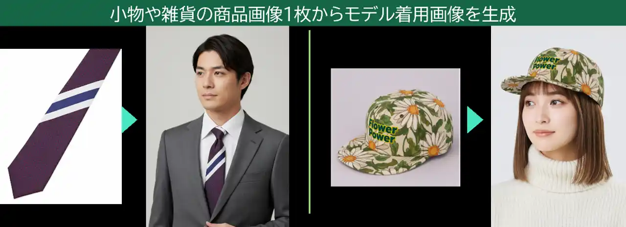 | 本サービスは画像生成AI を活用し、一枚の商品画像からブランドの世界観に合致した多彩なスタイリング画像をスピーディーに提供するサービスです。身体的特徴や雰囲気、ポーズや背景まで、AIモデルの着用イメージを自在に生成可能なため、これまでコストや時間の問題で表現しきれなかった商品の魅力を最大化し、ECサイトにおける戦略的なクリエイティブ活用と顧客体験(CX)向上に貢献します。 | |||