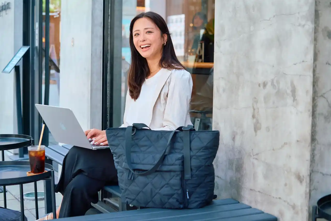 | シンプルながら上質なキルティング素材は、育児用バッグの枠を超え、ビジネスから普段使いまで幅広く対応。 | |||||||||