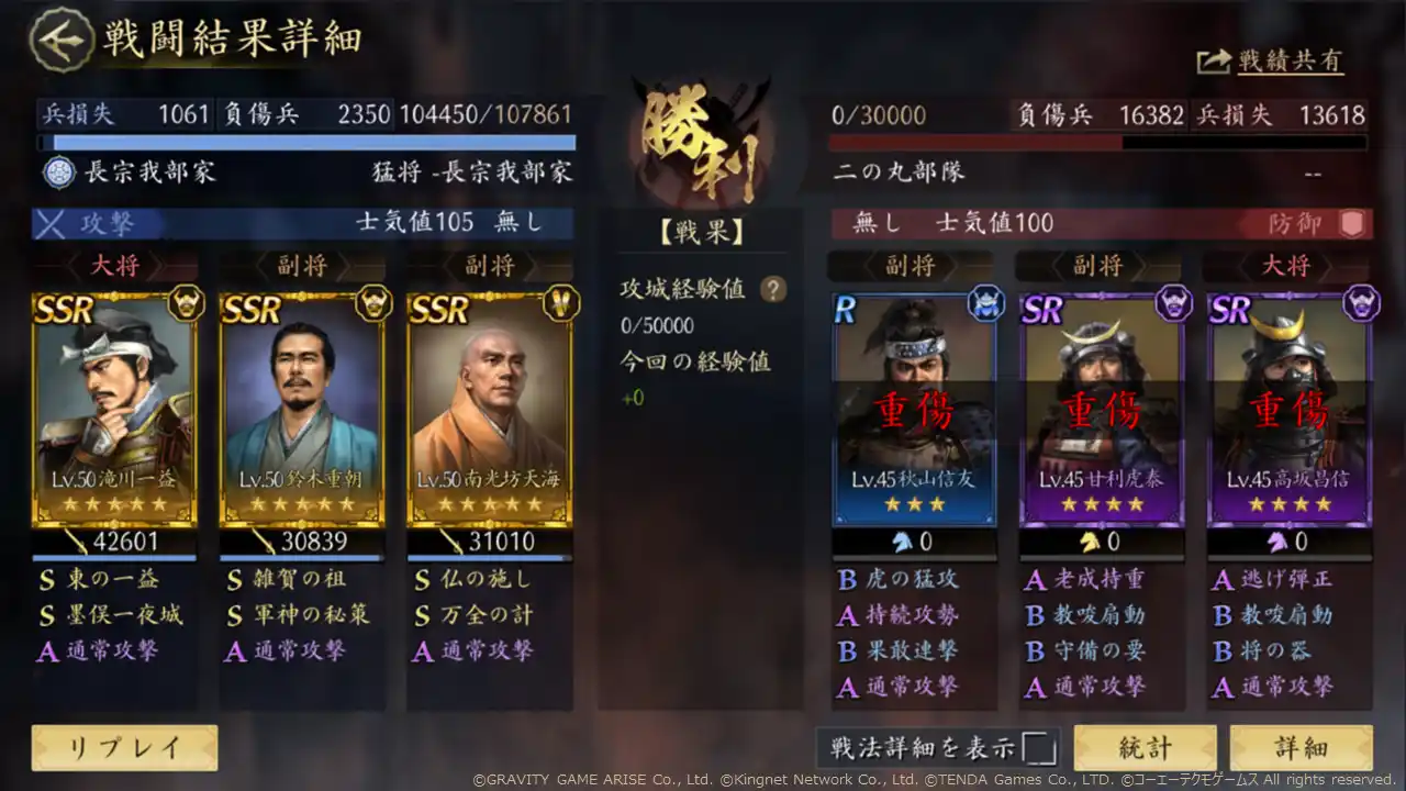 | 新たな政策の1つで、公布されると猛将部隊と呼ばれる部隊が城へ自動的に攻撃をしかけてくれます。政策終了時に猛将部隊が生存していた場合、対象拠点の耐久値を減少させることができます。この猛将部隊は強化も可能で、上手に使いこなすことが戦略のカギの1つとなります。 | ||||||||||||||||||