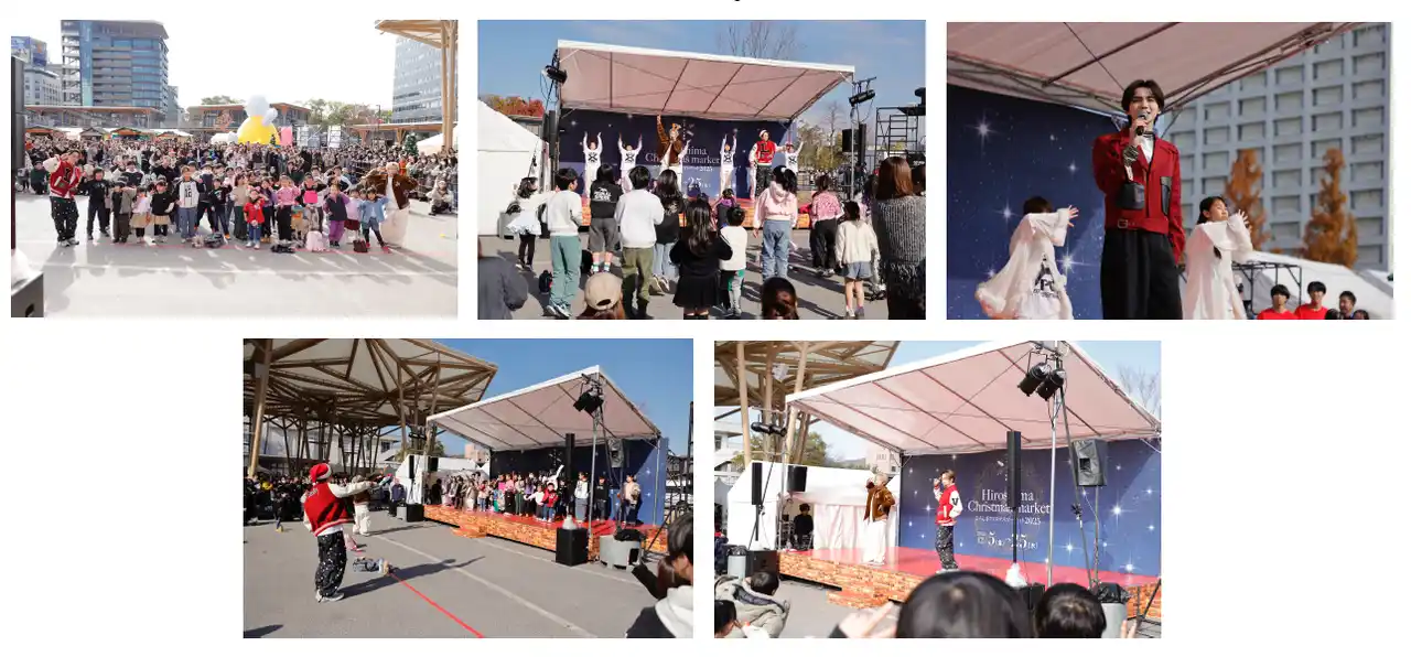 華やかなイルミネーションに包まれた会場で、グルメやショッピング、さまざまなコンテンツを楽しめる、広島の冬を彩る大規模クリスマスイベント「ひろしまクリスマスマーケット」が、2025年12月5日(金)~25日(木) で開催。さらに今年は、『ヒロマツホールディングス presents TGC 広島 2025』と連動し、「W TOKYO×LDH JAPAN 地方創生プロジェクト(※)」の一環としてTGC広島当日となる12月6日(土)に、「ひろしまクリスマスマーケット」内特設ステージにて、EXILE TETSUYAがプロデュースする「LDHダンスワークショップショー」を開催しました。 |