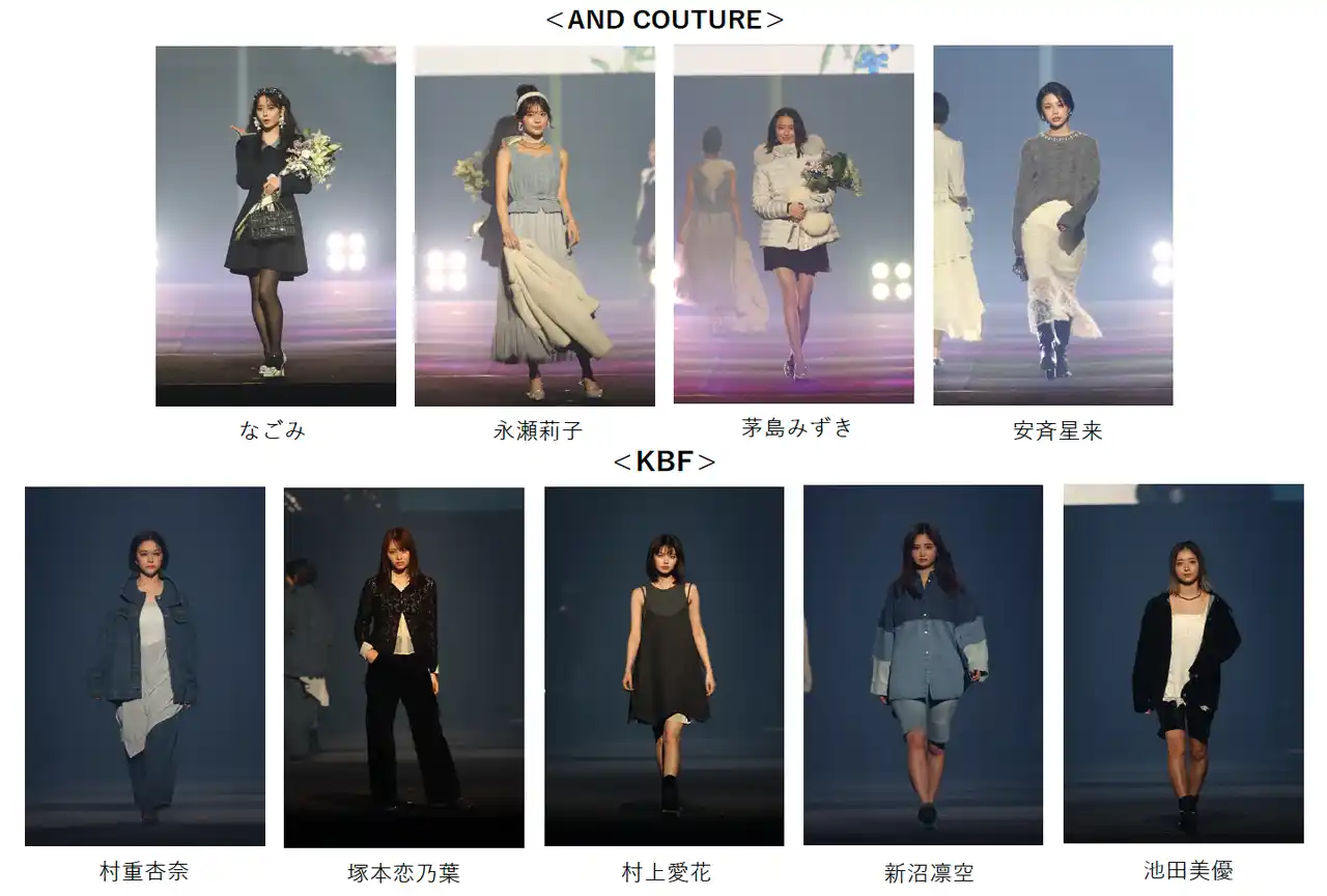 | “クチュールカジュアル”をキーワードに洗練されたアイテムを展開し、今年でブランド10周年を迎えたAND COUTURE(アンドクチュール)のステージには、「抜け感」を意識した大人キレイなスタイリングで、トップバッターにZ世代のファッションアイコンであるなごみ、数々の話題作に出演し、2025年12月11日(木)から放送スタートのMBSドラマ特区『透明な夜に駆ける君と、目に見えない恋をした。』でW主演を務める広島県出身の永瀬莉子に続き、次世代俳優として注目を集める茅島みずき、安斉星来らが登場しました! | |||