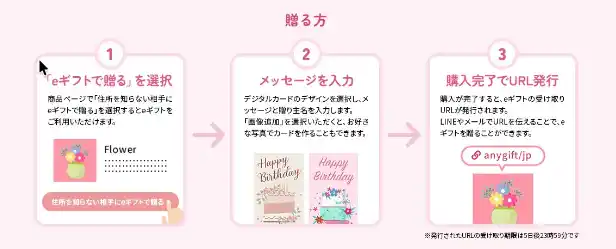eギフトURLから住所を入力いただくだけで対象商品が届きます |