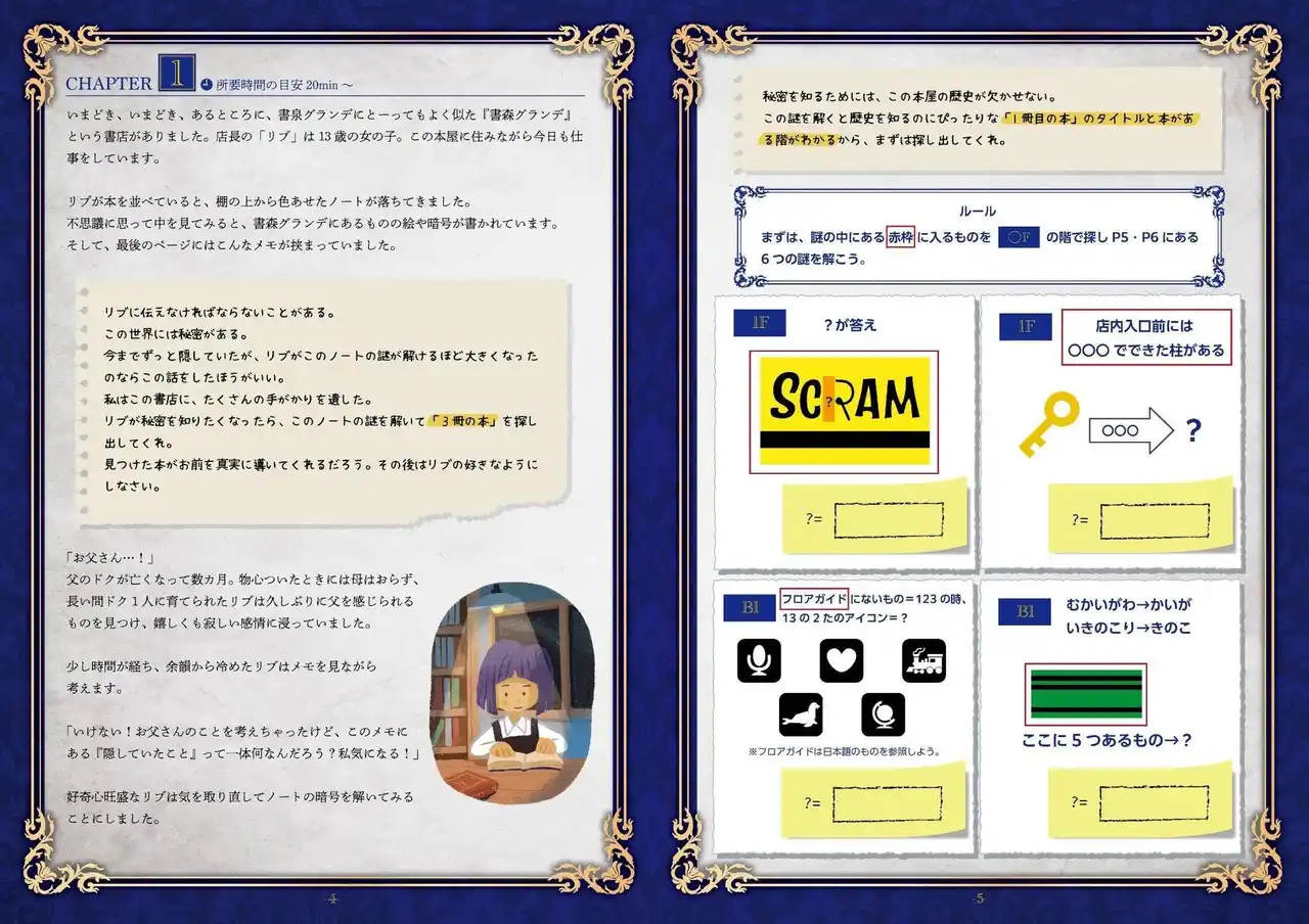 | 書店内を巡り隠された手がかりをみつけ、謎を解いていきましょう。 | |||