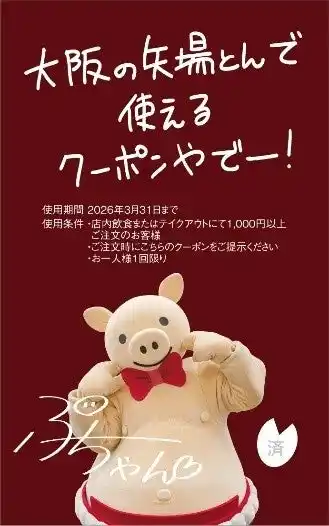 対象店舗:矢場とん「大阪 阪急三番街店」「大阪大丸心斎橋店」「大阪松竹座店」「大阪あべのハルカス店」 |