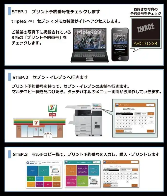 セブン‐イレブン店内のマルチコピー機を使用して、アーティストのライブを中心としたコンテンツプリントをその場でプリントできます。 |