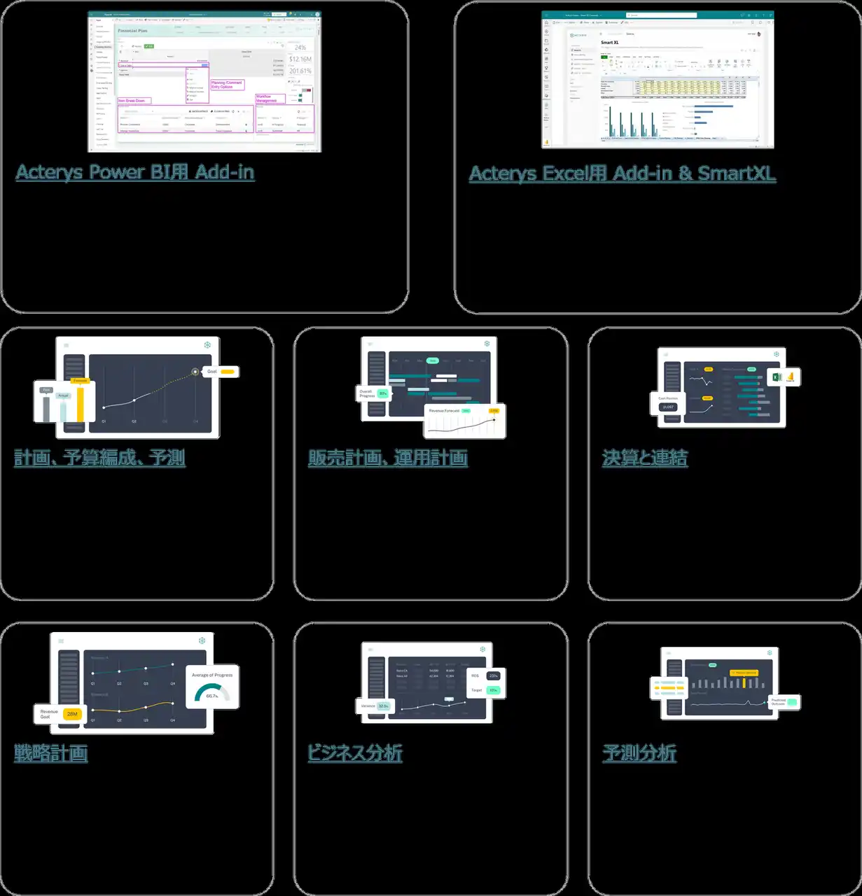 Acterysは、Microsoft FabricとPower BIに強力かつリアルタイム・シームレスなWrite-Back(書き込み)機能とワークフロー機能拡張を追加することで、従来は「見る」だけだったBIツールを、予算編成や経営計画などの入力・編集が可能でAIとの親和性も高いCPM(Corporate Performance Management)・xP&A(Extended Planning & Analytics)ソリューションへと進化させます。 |