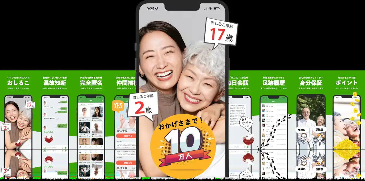 カイト株式会社(本社:東京都港区、代表取締役:後藤崇)が運営する50歳以上限定のシニア向けコミュニティSNS「おしるこ」は、順調に利用者数を伸ばし、2025年11月時点で会員数が10万人を突破いたしました。また、本サービスは神奈川県の「神奈川ME-BYOリビングラボ」実証事業に採択され、第三者倫理審査委員会(IRB)の承認を経て、高齢者の孤独・孤立解消および「社会的フレイル」の抑制効果を検証する実証研究を開始したことをお知らせいたします。 |