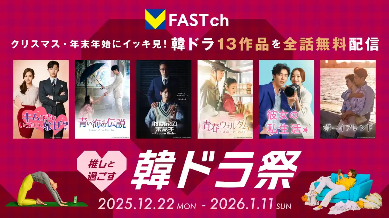さらに、2025年12月29日(月)~2026年1月4日(日)の7日間は、1日1作品を連続配信する「全話一挙配信ウィーク」を開催します。気になっていたあの作品を、今こそまとめて楽しめるチャンス!スマホやテレビで簡単に視聴できるので、家族や友人と過ごす時間にもぴったり。ぜひこの機会に、V FASTチャンネルで韓国ドラマの魅力を体験してみてください。 |