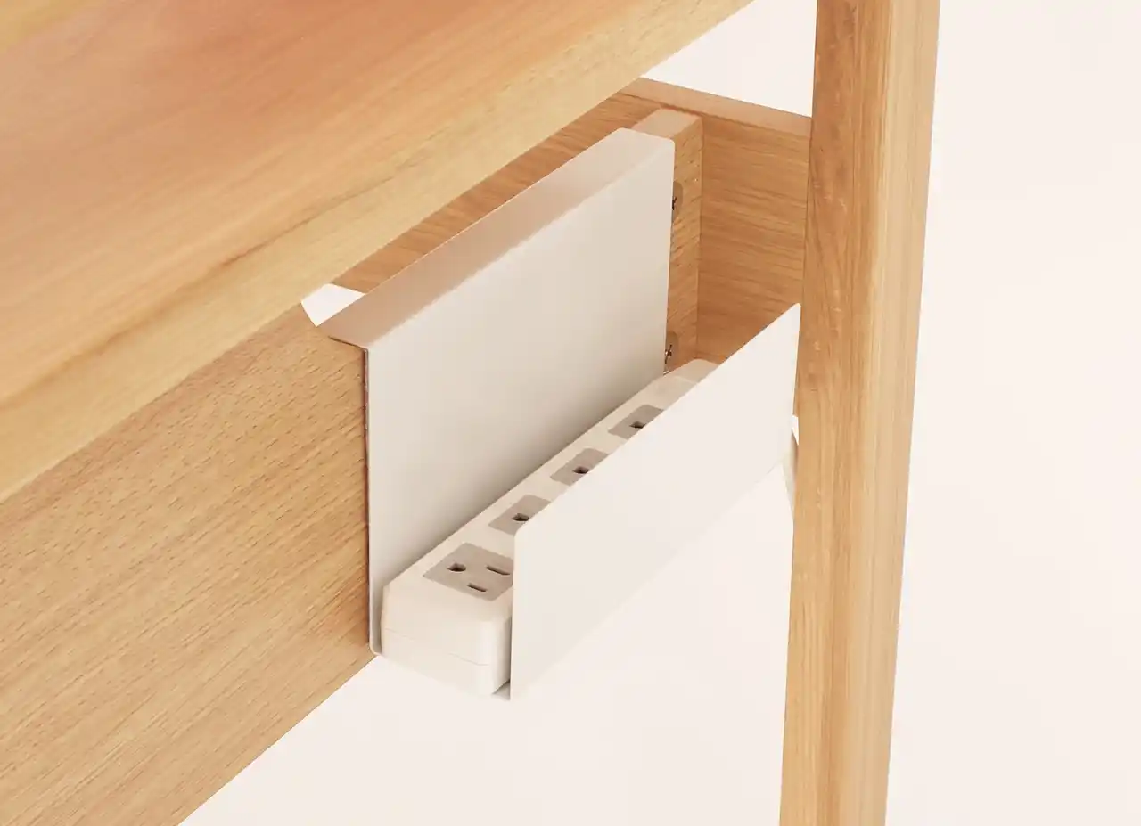 デスクには、手提げ袋や帽子、ランドセルなどを掛けられるフックを2個付属。さらに電源タップやルーターをまとめられる配線トレイも標準装備しています。これらは背面・側面など好きな場所に取り付けられ、毎日の学びや作業をスムーズにする“使いやすさ”へのこだわりを詰め込みました。 |