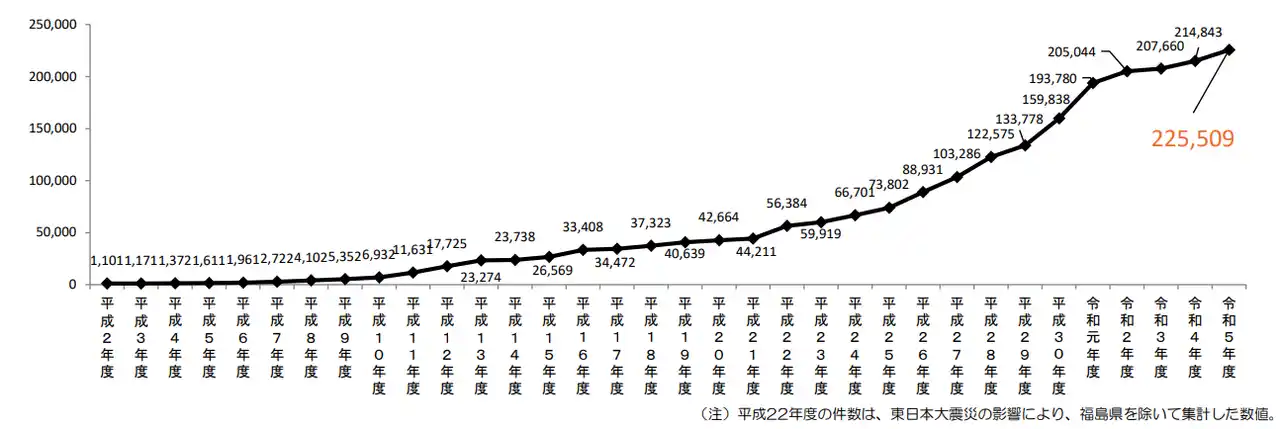 児童虐待は「一部の特殊な家庭だけの問題」ではなく、誰にでも起こりうる社会的リスクとなっています。厚生労働省の統計によると、全国の児童相談所が対応した児童虐待相談件数は約22万件(※最新版)に達し、30年前の約200倍に増加しています。その背景には、共働き世帯の増加、核家族化、地域のつながりの希薄化などによって、親が子育ての悩みを一人で抱え込みやすくなっている現実があります。 |