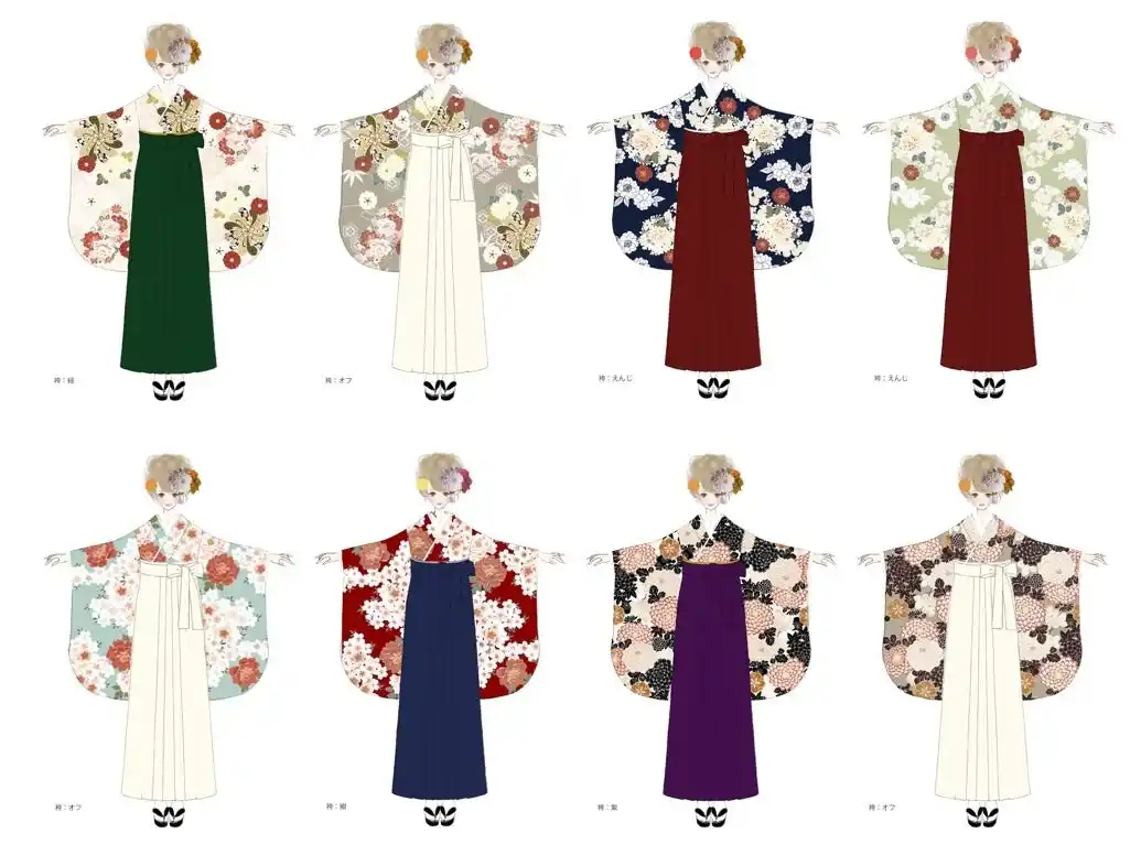 ・バリエーション:8タイプの着物×5色の袴 |