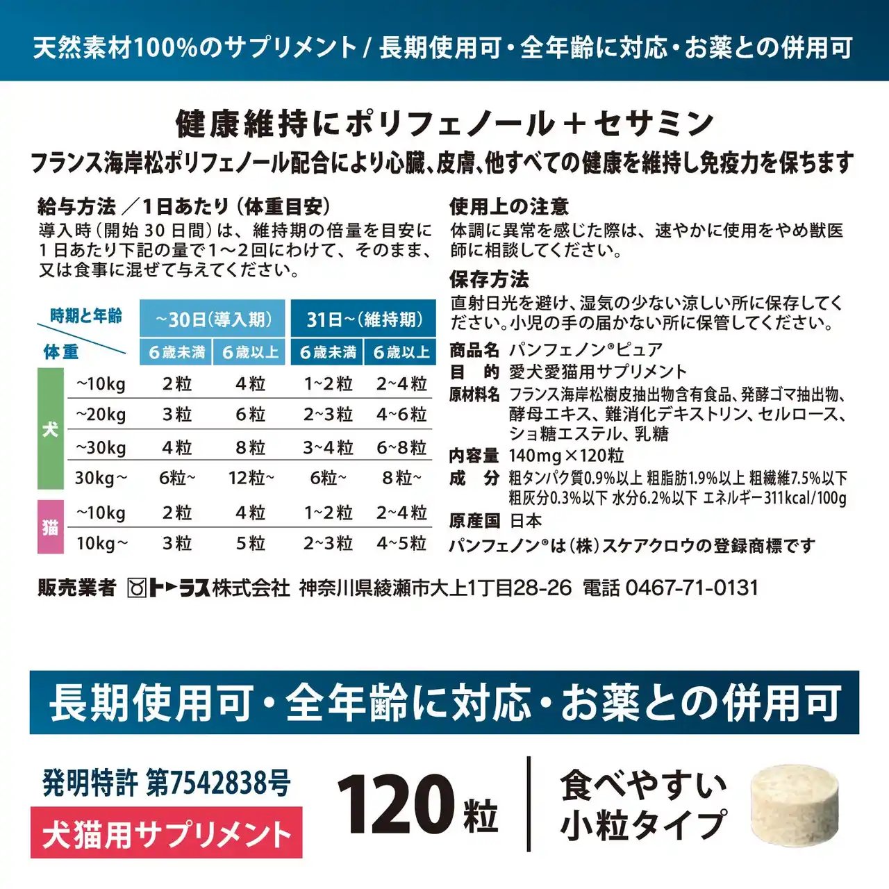 飼い主様が“今できること”を増やすことで、愛犬・愛猫の未来に安心を届けたい。 パンフェノン(R)ピュアは、そうした想いから生まれた製品です。 |
