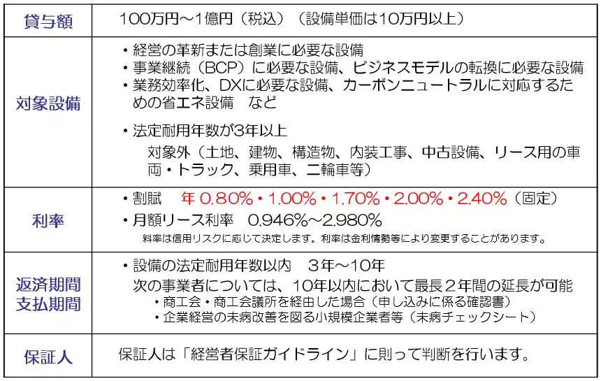 ・最大1億円まで利用可能で、高額の設備が導入できます。 |