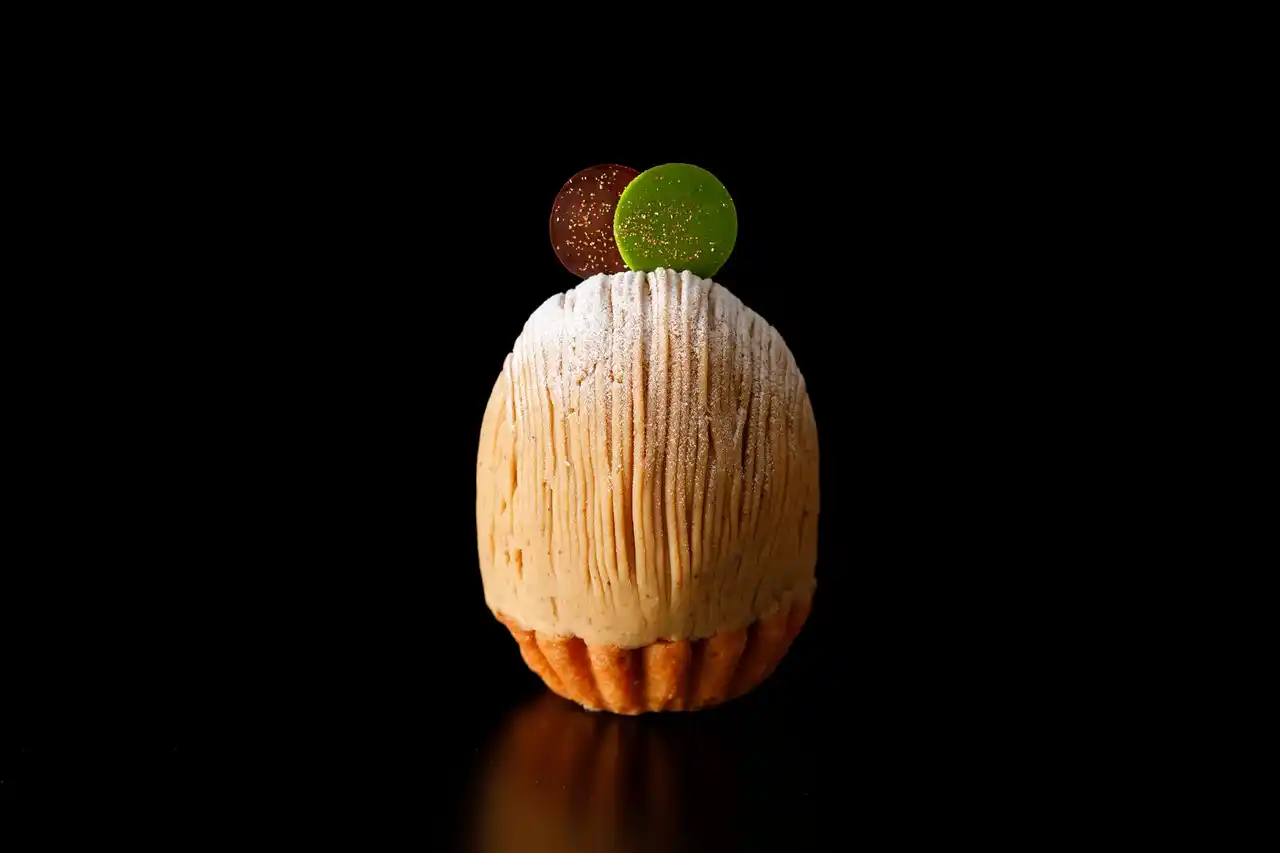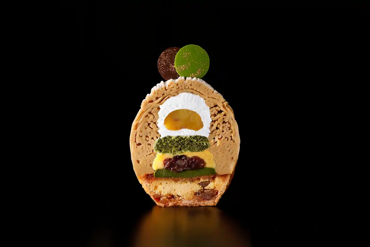 | 秋から冬にかけて登場する『スーパーモンブラン』は、イタリア産マロングラッセ入りアーモンドタルトに、濃厚な「抹茶カスタードクリーム」や「太陽卵のカスタードクリーム」、まろやかな甘さの「黒蜜あんこ」、そしてふんわりとした「抹茶メレンゲ」の軽やかな口当たりをお愉しみいただけます。隠し味には、青ヶ島の「ひんぎゃの塩」を使用。仕上げには、茨城県産の蒸し栗を、九州・大牟田産の濃厚な生クリームで包み込み、栗の香りと甘みを最大限に引き出しました。 | |||||||||||||||||||||
