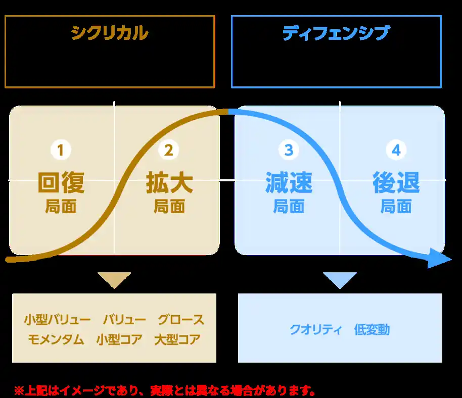 景気局面別で優位な傾向になるファクターイメージ |