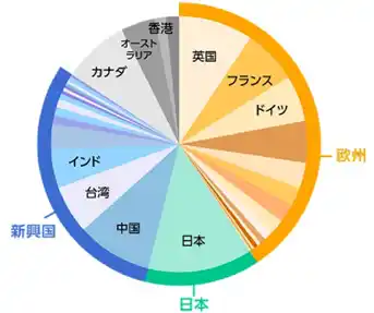 ※構成比率:欧州が約40%、日本が約14%、新興国が約27%(2025年9月末時点) |