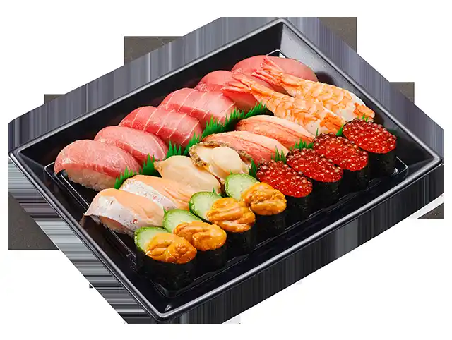 | ・セット内容:・神奈川水揚げ 天然本鮪大とろ・神奈川水揚げ 天然本鮪中とろ・まぐろ・とろサーモン・大切り蝦夷あわび・本ずわい蟹・頭肉付き大えび・うに(一人前につき2貫)・特盛いくら(一人前につき2貫) | ||||||||||||||||||