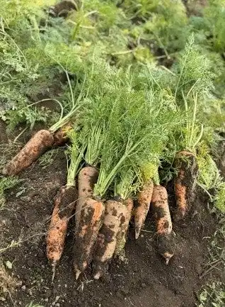 原料に使用されているにんじんの圃場や生産者※の様子 ※ 契約生産農家のうちのお1人です |
