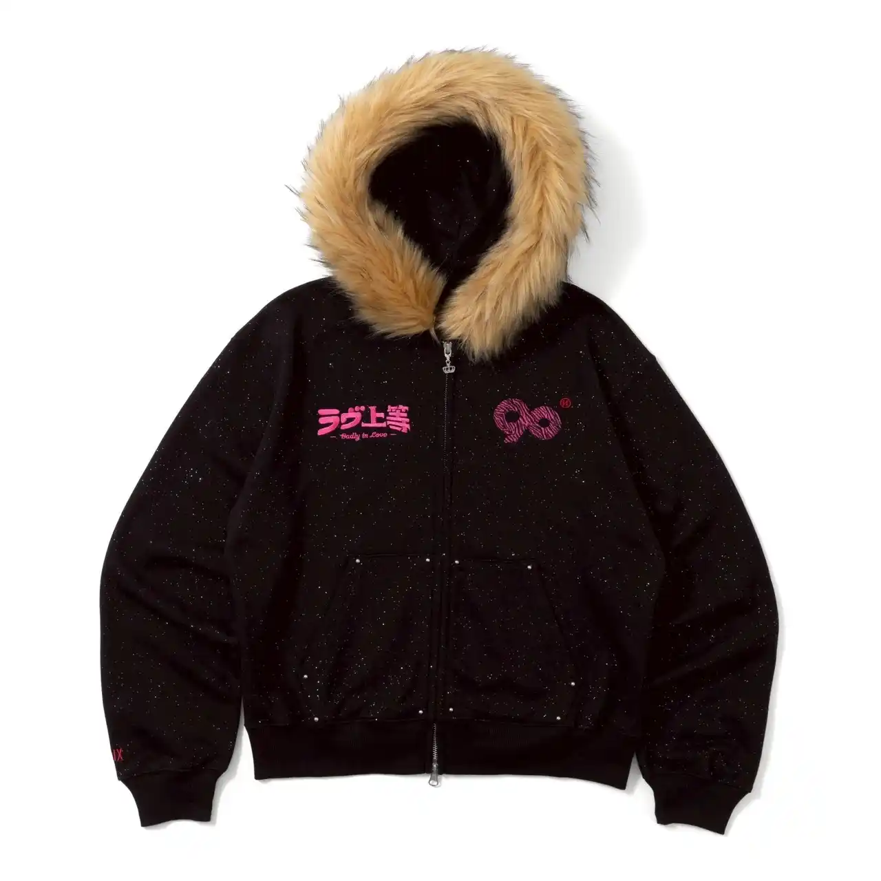 【×ラブ上等 90 Logo Glitter Fur Zip Hoodie】 |