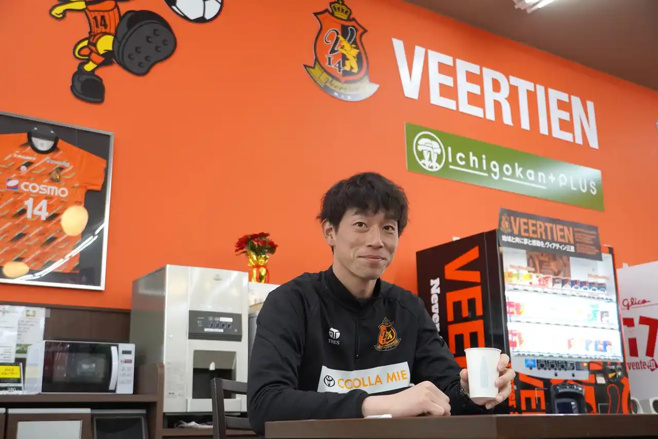 リニューアルしたイートインコーナーとヴィアティン三重トップチームの森 建太(モリ ケンタ)選手 |