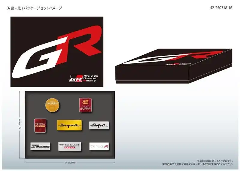 イベント参加者には、心に残る贈り物として、スープラのエンブレムをあしらった8種のピンバッジ入り特製ボックスをご用意しました。その輝きには、47年にわたり愛され続けたスープラの歴史が刻まれています。他では手に入らないこちらの特製ボックスを、ぜひ大切な思い出のカタチとしてお持ち帰りください。 |
