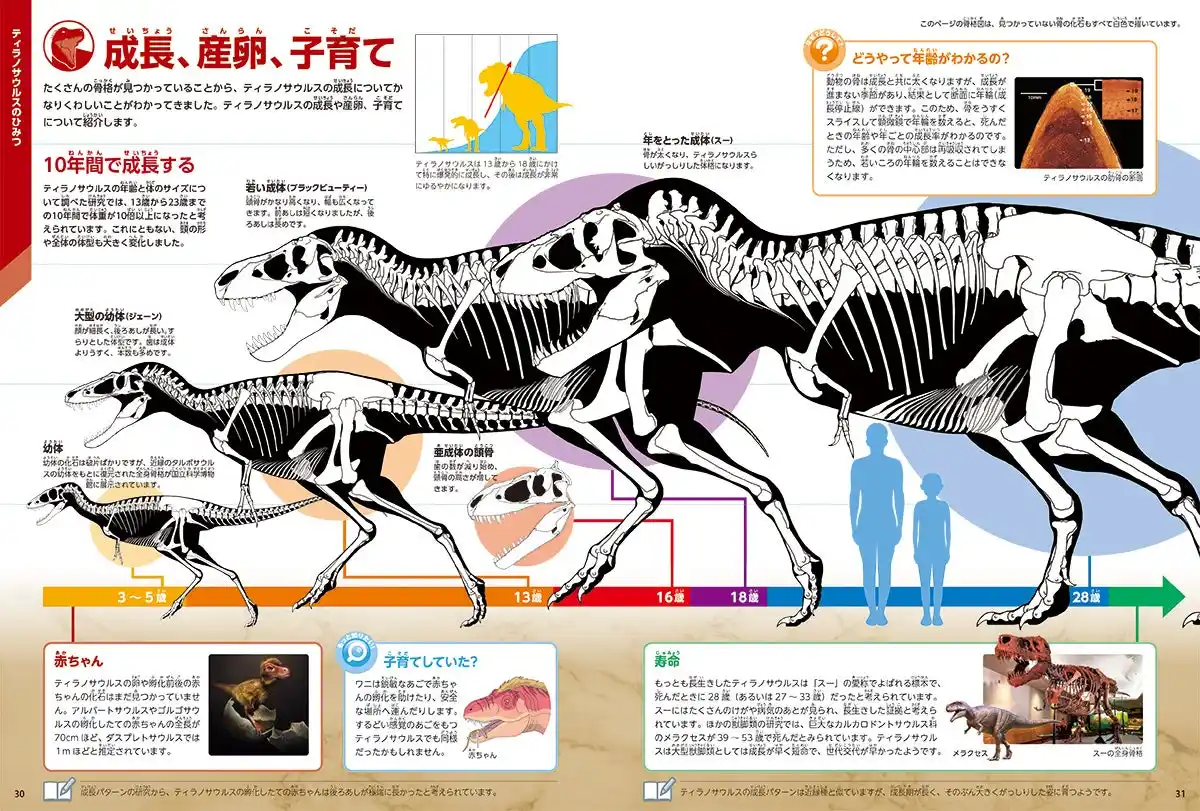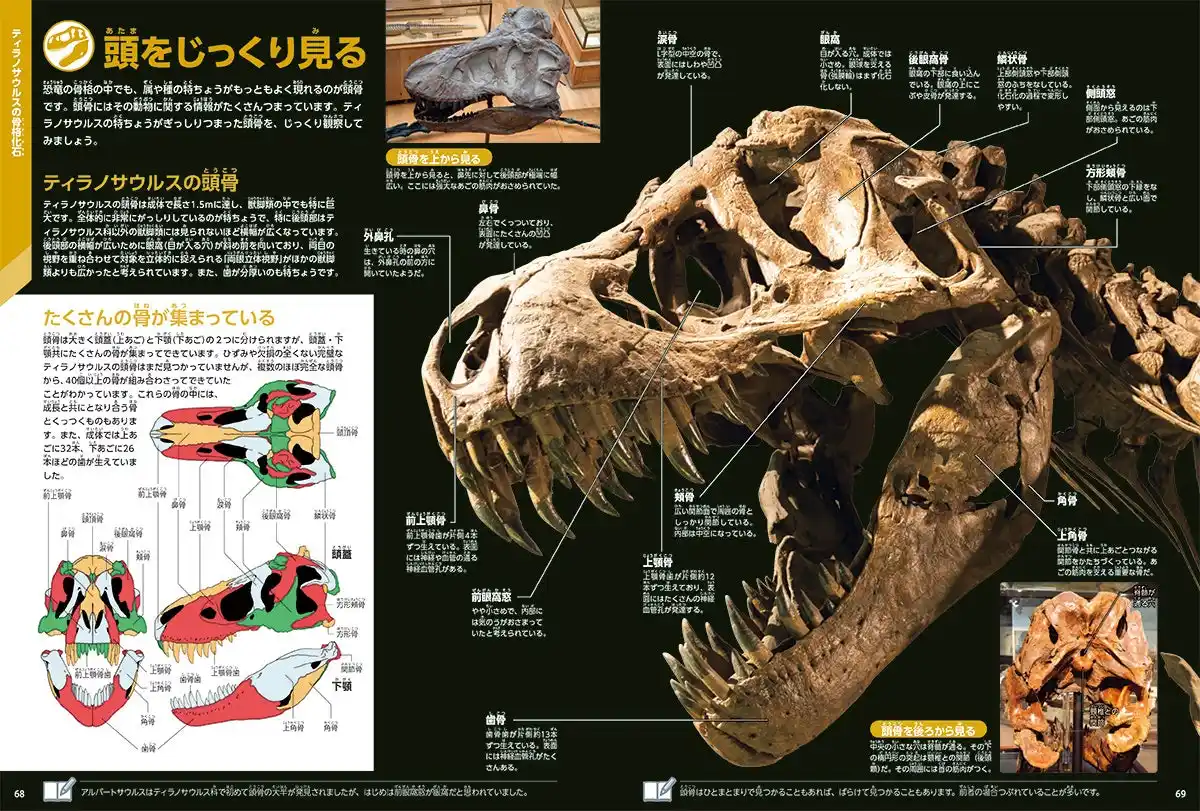 ティラノサウルスのなかまを約30種紹介し、進化の流れを解説。 |