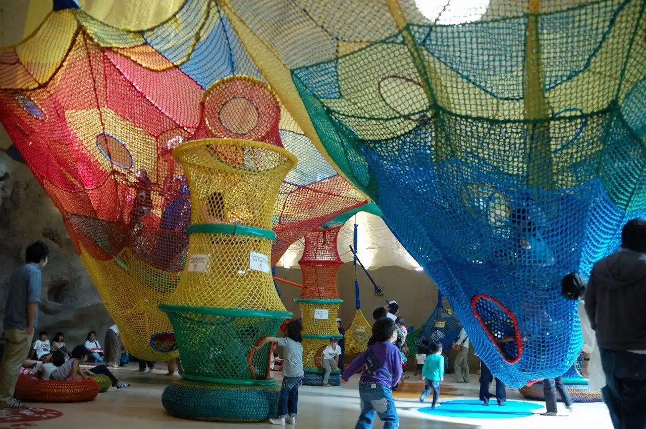 そりが楽しめる【そりゲレンデ】にある【虹の巣ドーム】ではクモの巣のようなネットで遊ぶことができます! 年齢制限:小学生以下 |