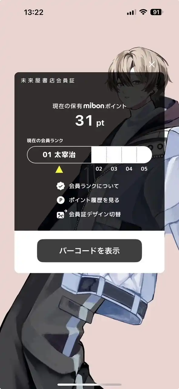 未来屋書店をご利用いただくほど、どんどんポイントが貯まるおトクな制度です。会員ランクは5段階からなり、ランクごとに表示されるため、さまざまなデザインをお楽しみいただけます。 |