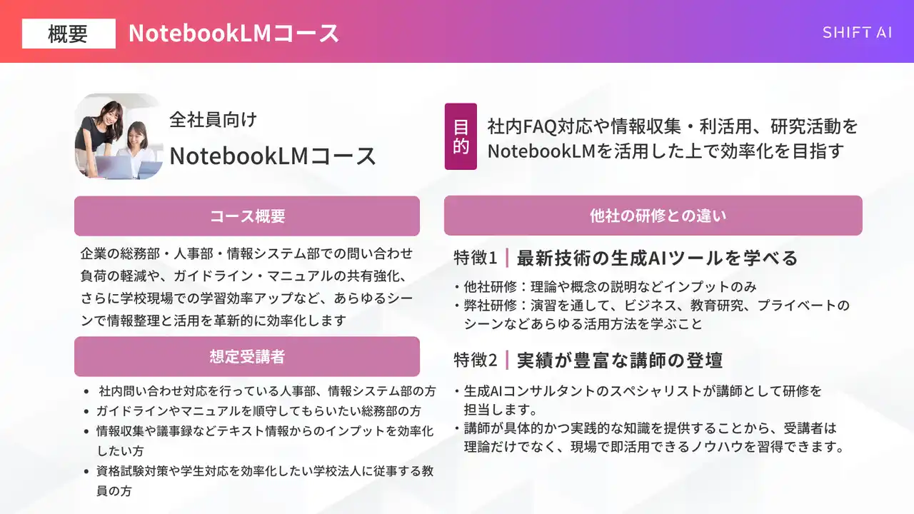 | SHIFT AI for Biz、2025年12月16日「NotebookLMコース」を大幅アップデート |