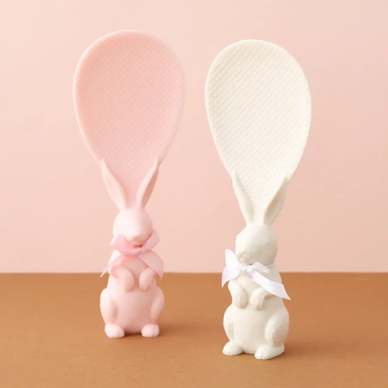 長きにわたり皆さまに愛される、うさぎモチーフの便利に使える立つしゃもじです。木彫り風のグリップはしっかりと握りやすく、使わないときは自立するので保管スペースをとりません。キッチンに置いておくだけで、いつでもガーリーな雰囲気を演出でき、インテリアとして飾ることができます。さらに、しゃもじの素材はポリプロピレンを採用しており、表面にはエンボス加工が施されているので、米粒が取れやすく後片付けも簡単です。新生活のキッチンアイテムとしてはもちろん、動物モチーフの親しみやすいデザインで、小さなお子さんとの料理時間にもぴったりです。首元はリボンでおめかししているので、一人暮らしを始める友人やお世話になっている方へのちょっとした年始のご挨拶ギフトにもぴったりです。 |