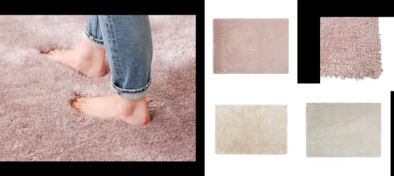 ラメ糸が上品にきらめいて高級感のある空間を演出する「カステ」シリーズです。3色の太い糸と3色の細い糸と1色のラメ糸を使用しており、スタイリッシュながらも繊細で柔らかな感触に仕上げました。穏やかなトーンのカラーリングはインテリアコーディネートに取り入れやすく、お部屋を上質な雰囲気に彩ります。毛並みや光の加減によって繊細な表情の変化を楽しめます。裏面に厚さ1.8cmの低反発素材をプラスした、もっちりとした弾力と肌触りがやみつきになる低反発のラグマットは、長時間ラグの上で過ごされる方におすすめです。ふわふわで柔らかな踏み心地が特徴で、ラウンド型や一人暮らし向け、ファミリー向けまで幅広いサイズをラインアップしているので、お部屋の広さや用途に合わせてお選びいただけます。 |