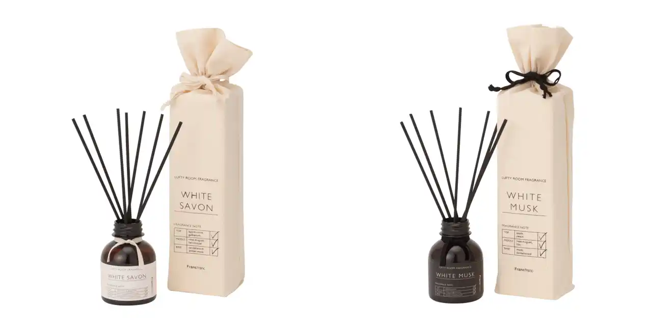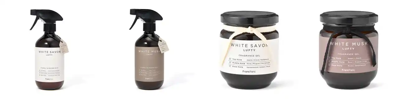 植物性消臭成分配合のフレグランスシリーズです。香りは、ほんのり甘くまろやかで大人っぽいムスクの香りと、洗い立てのリネンのような清涼感のある爽やかなサボンの香りの、2種類をラインアップ。気になる臭いを消臭しながら、心地よい香りを楽しめて、お部屋を素敵な空間へと導きます。ナチュラルで洗練されたデザインで、お部屋に馴染みやすいのもポイント。ルームフレグランスは、ボトルが樹脂製なので丈夫で割れる心配がなく、フレグランスジェルはコンパクトサイズなので、お風呂やお手洗い等の狭くて動きの多い場所で活躍します。ファブリックミストは、衣類やカーテン、ソファなどの布製品や、お部屋や車内の気になるにおいなど、様々なシーンでお使いいただけます。 |