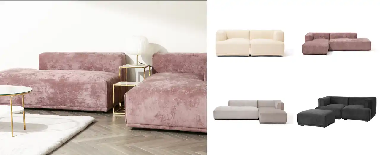 自分好みにカスタマイズできる「メーネ」シリーズです。カウチの向きを左右で選んだり、同じソファを並べたり、お部屋の間取りやライフスタイルに合わせて設置できます。背もたれが低めなので、圧迫感がなく部屋を広く見せてくれるのもポイント。少しツヤのある光沢感が落ち着いた印象を与え、しっとりソフトな肌触りの起毛生地で、より快適なリラックスタイムを過ごしていただけます。低めの座面高に適したクッションを採用し、表面生地の下にフェザーの層と固めのウレタンフォームの層を設けることで、硬過ぎず柔らか過ぎない座り心地に仕上げています。奥行きがあり寛げるサイズ感にマッチしたクッション性をお楽しみいただけます。 |
