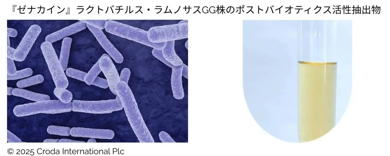 『ゼナカイン』は、睡眠の質・肌の再生力・感情のポジティブ化を同時に高めることを目指した、最先端のニューロコスメの機能性原料です。独自の発酵技術により得られた乳酸菌ラクトバチルス・ラムノサスGG株由来のポストバイオティクス抽出物を主成分とします。近年注目される脳腸相関(Gut-Brain Axis)の知見を応用し、肌と心のバランスに多角的にアプローチします。 |