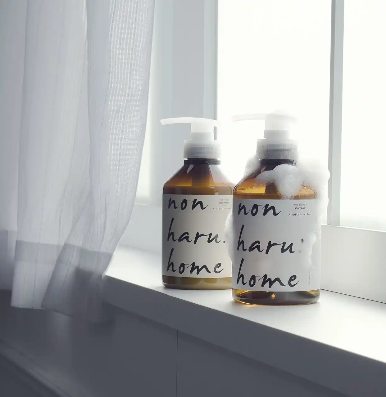 アンバサダーの皆様には、non haru:homeの「ヘッドクレンズシャンプー」と新感覚テクスチャーで注目の泡立つトリートメント「ヘアモイストトリートメント」を日常の中でご使用いただきます。 |