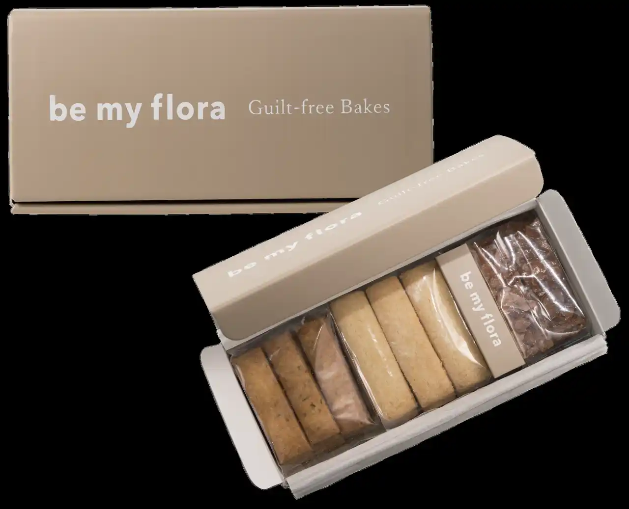 「be my flora Guilt-Free Bakes」は、甘みと塩味のバランス、食感にこだわった「香ばしナッツのフロランタン」「発酵バターのさっくりショートブレッド」「薄焼きオレガノチーズ」の3フレーバーを詰め合わせました。 |