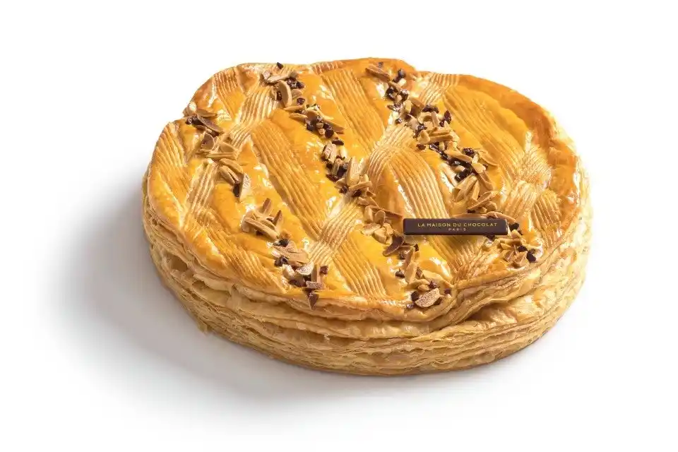フランスで新年を祝う伝統菓子「ガレット デ ロワ」を、メゾンならではの感性とレシピで仕上げたガレット。アーモンドクリームを混ぜた軽やかでとろけるようなガナッシュをパイ生地に詰め、こんがりと焼き上げています。トップにはカカオの香りを纏ったデコレーションを施し、サクサクとしたパイの食感とショコラのハーモニーをお楽しみいただけます。 |