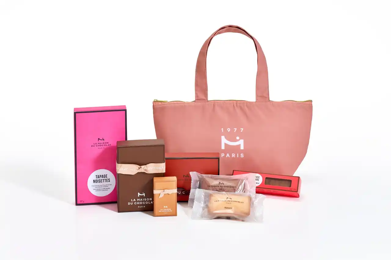 お客さまへの日頃の感謝を込めた、メゾンの人気アイテム7点のバラエティ豊かな味わいをお楽しみいただける年始の特別セットです。ボンボン・ドゥ・ショコラ6粒の詰合せボックスに加えて、トリュフや焼き菓子などを、ボナネ サック限定のオリジナル保冷バッグ付きでお届けします。常設ブティックとオンラインブティック限定の2種類を展開。新年のご挨拶や自分へのご褒美にぴったりのハッピーバッグです。 |