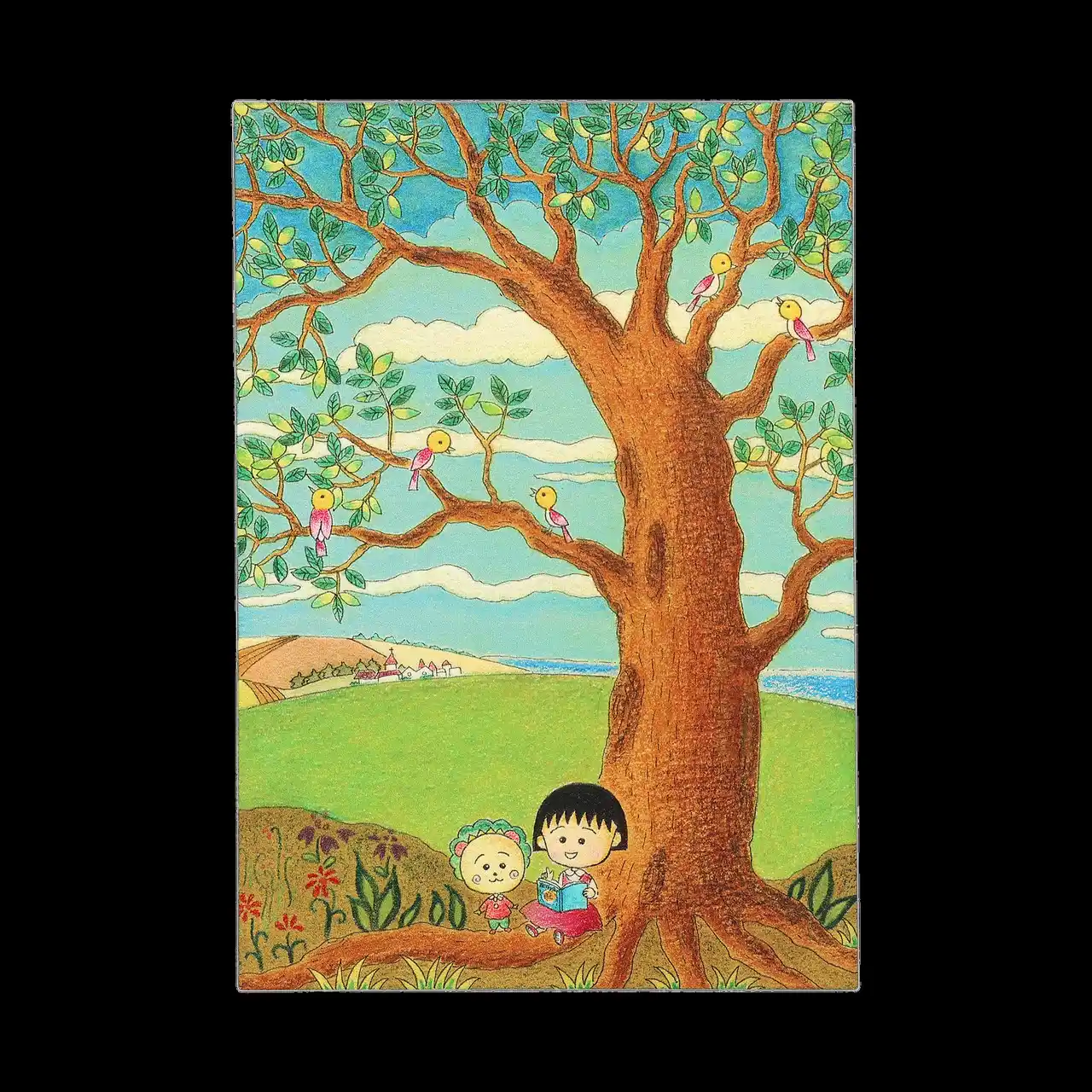 右)【ゆめいろ商店限定】penon木製ポストカード「まる子とコジコジの読書」 1,210円 |