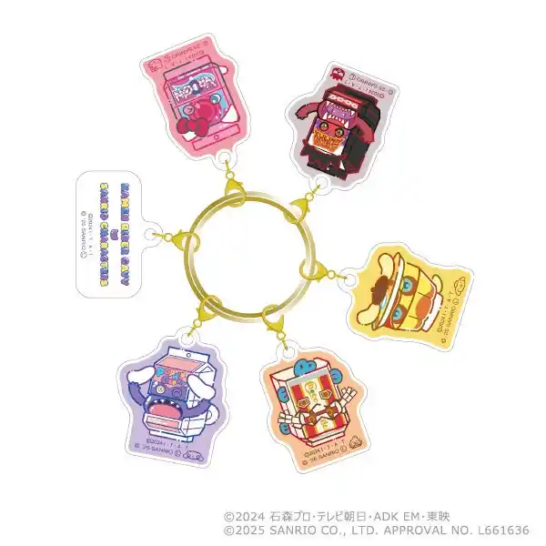 仮面ライダーガヴ×サンリオキャラクターズの6連アクリルチャームが登場!ひとつずつ取り外してチャームとしても使えます。 |